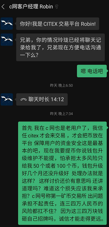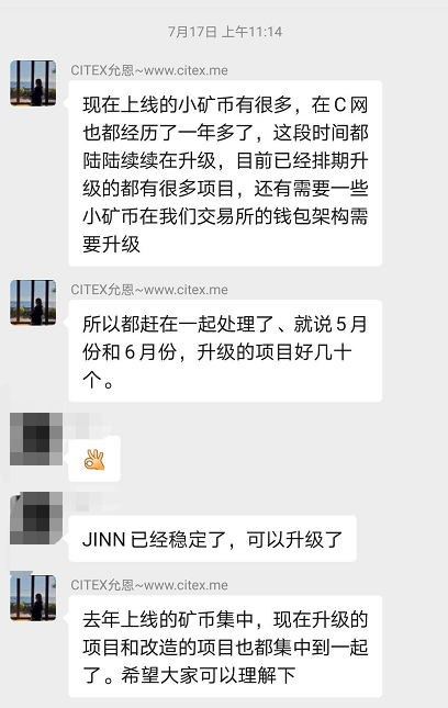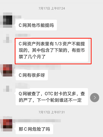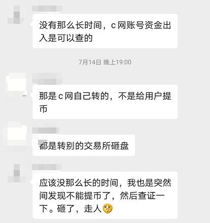 根据投资者爆料,C网就是不给他提现,找了各种理由来拖延时间。这个理由是钱包框架升级,无法转出。但是说实话,你升级了三个月还没有升记好,这个效率也太慢了吧?