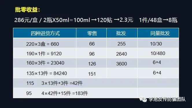 网友发来的一份道圣康膜“体验式新零售商业模式”PPT中提到,其产品零售价为286元/盒,进货价从220元-95元不等。除了赚取差价,还有二次进货补贴、服务补贴、月销量超额补贴、特别补贴等各种奖励。