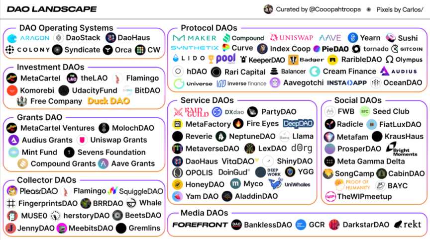 根据对权益的下发,DAO 变成 Web3 世界里的创新性造就,意味着数据加密历史时间的新篇章。也如同其期盼的那般,DAO 早已被运用至政冶、造型艺术、金融业、游戏娱乐这些行业,并依据主要用途催生出不同类型的种类。