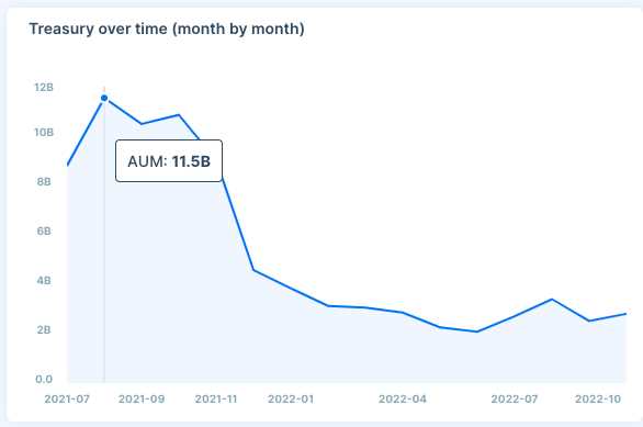 一样,BitDAO 资金在过去的六个月从 60 亿降低到约 27 亿。在 20000 DAO 货币持有人中,上一个月仅有 40 人网络投票。