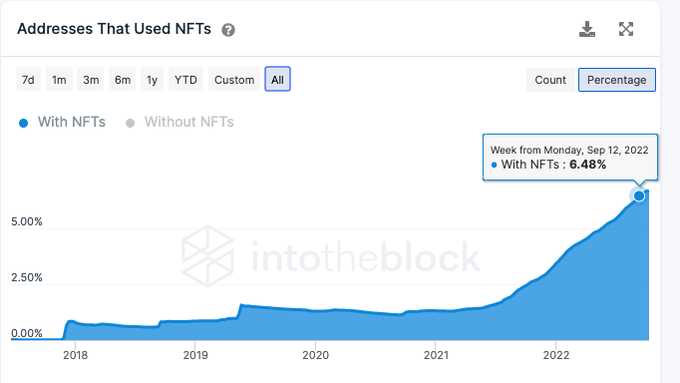虽然主题活动呈下降发展趋势,但是和 NFT 有关的钱包如今占全部主题活动 ETH 钱包的 6% 上下。这便是零售业的发展模式。