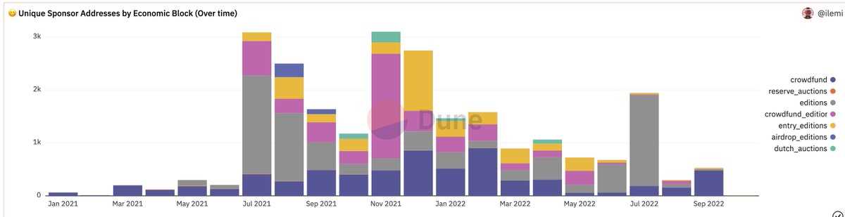 销售量主要在顶尖系列产品(BAYC、cryptopunks 等)——但这并不代表比较小的系列产品并没有营销活动。