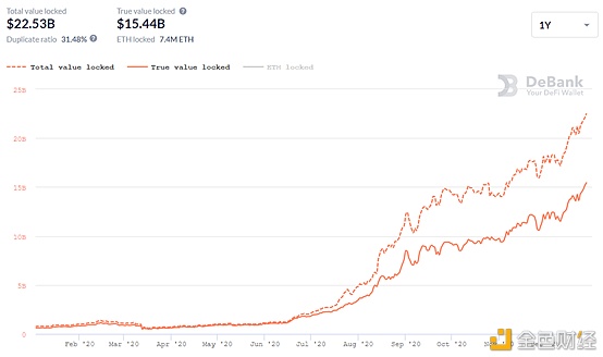 图1 DeFi市场TVL增长情况,数据来源:DeBank