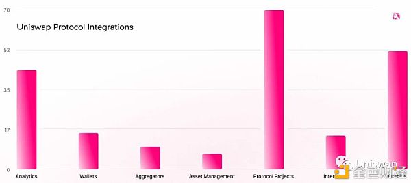 Uniswap现在有超过200个跨协议、数据分析服务、高级接口、钱包等的集成。