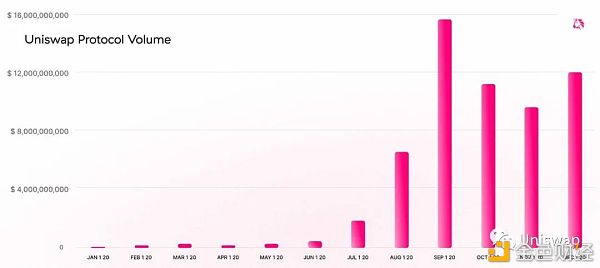 9月,该协议的周销量一度超过Coinbase。今天,Uniswap是全球第五大加密货币现货交易平台。