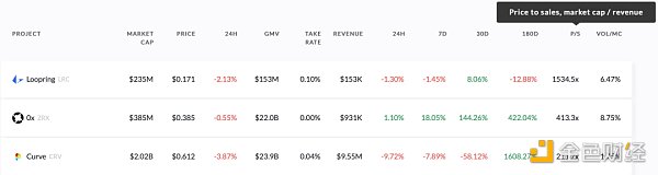 关于平台代币在二级市场一些有意思的数据,包括年总交易量、年总交易手续费、平台年总收入、市值/收入的比值,24h 交易量/代币完全流通市值的比值等;