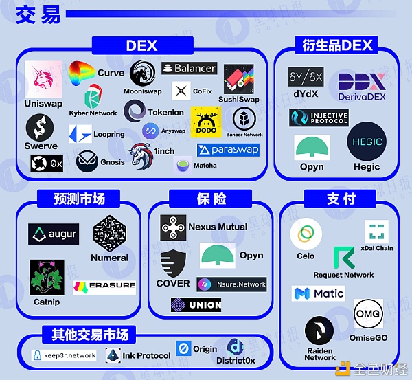 之所以做如此区分,皆因本文含有一条副线,在按业态分类之外,仍囊括 DeFi 的基础设施部分进来。它们虽不算是严格意义上的 DeFi,但却是 DeFi 离不开的原料和工具。