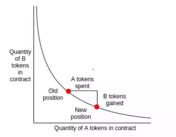Uniswap 引入了恒定积做市商公式,以确保在以太坊的 Token 交易中具有恒定的流动性,公式如下: