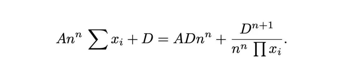 其中 x 是每种资产的储备量,n 是资产的数量,D 是不变量(储备中的总值),A 是放大系数(类似于「杠杆」,代表了曲线的弯曲程度)。
