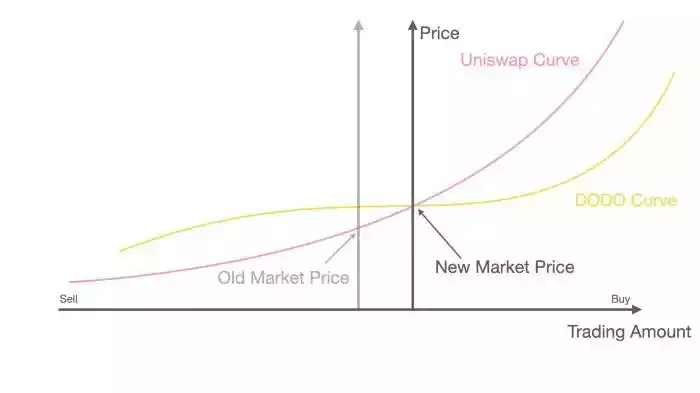 为了增加协议的流动性并尽量提高资金利用率,DODO 引入了主动做市商 (PMM)。简而言之,PMM 利用链上预言机来收集准确的价格数据并在当前市场价格附近聚合流动性。为此,DODO 需要及时的移动资产池的曲线,以确保有足够的流动性可用,并在整个市场价格上创建一条更平坦的曲线。随着曲线变得越来越平坦,流动性变得更加广泛,用户就可以从较低的滑点中受益。DODO 还实施了单边流动性,一笔交易对应着两个独立的池(一个买入池和一个卖出池),从某些角度上来说 PMM 更接近传统的做市商模式。