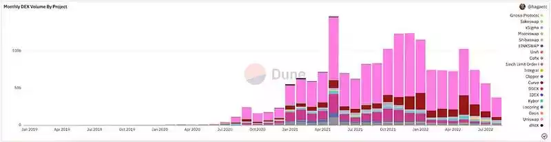 在本节中,我们将分析他们的突破性创新、他们的统治地位以及他们如何垄断了市场。我们将以最近几个月带来显着创新的其他几个 AMM 来结束本章,从时间线上看,第三代 AMM 是 2021 年年中直到最近几个月的加密货币熊市才开始的。