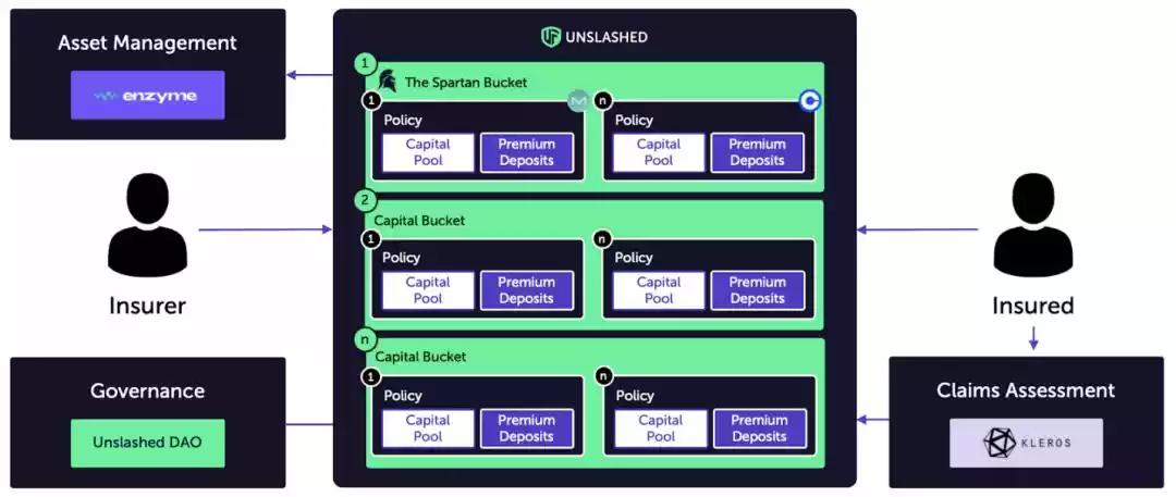 基本运作与 DeFi 借贷相似。作为一个平台,开设各类保险池,向群众开放保险购买和承保功能,组成各类保险对,供双边用户自由购买保险和注入流动性。
