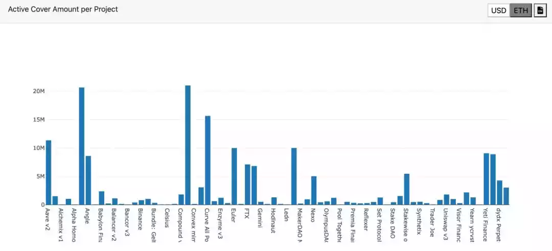 截至 9 月 19 日,平台活跃保额 1.83 亿美元,最受欢迎的是 Convex Finance(2100 万),其次为 Anchor(2066 万),Curve 全池(1566 万),总质押金额为 3.28 亿。根据模型换算后总资金池为 2.4 亿,但覆盖当前保险的最低资本要求(MCR)资金池为 2.54 亿,因此质押数量是不够的。