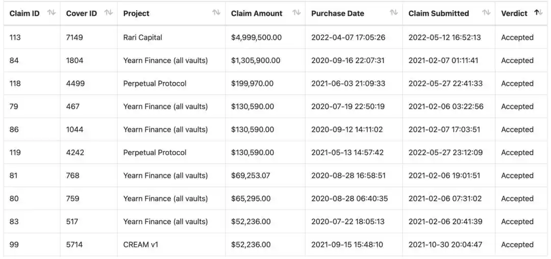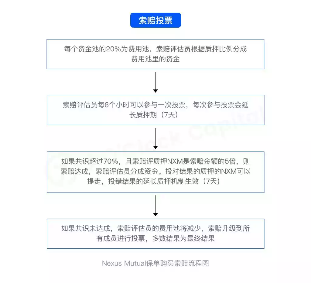 (1)Token 持有者投票:根据保险协议的制度,会设定索赔评估员(需要购买 Token),这些成员根据索赔提案进行投票,通过则进行索赔。