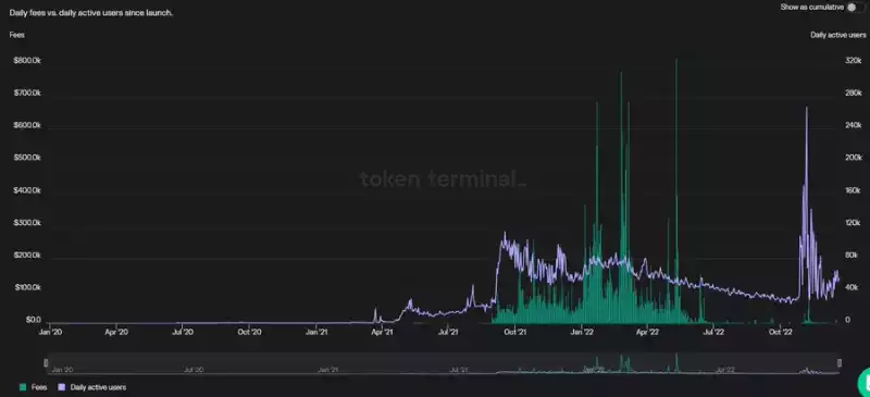 自 2022 年起,Fantom 收益和成本一直处于下跌趋势。现阶段她们好像已经趋于稳定,FTM 在区块链的 30 天收益中排第 12。