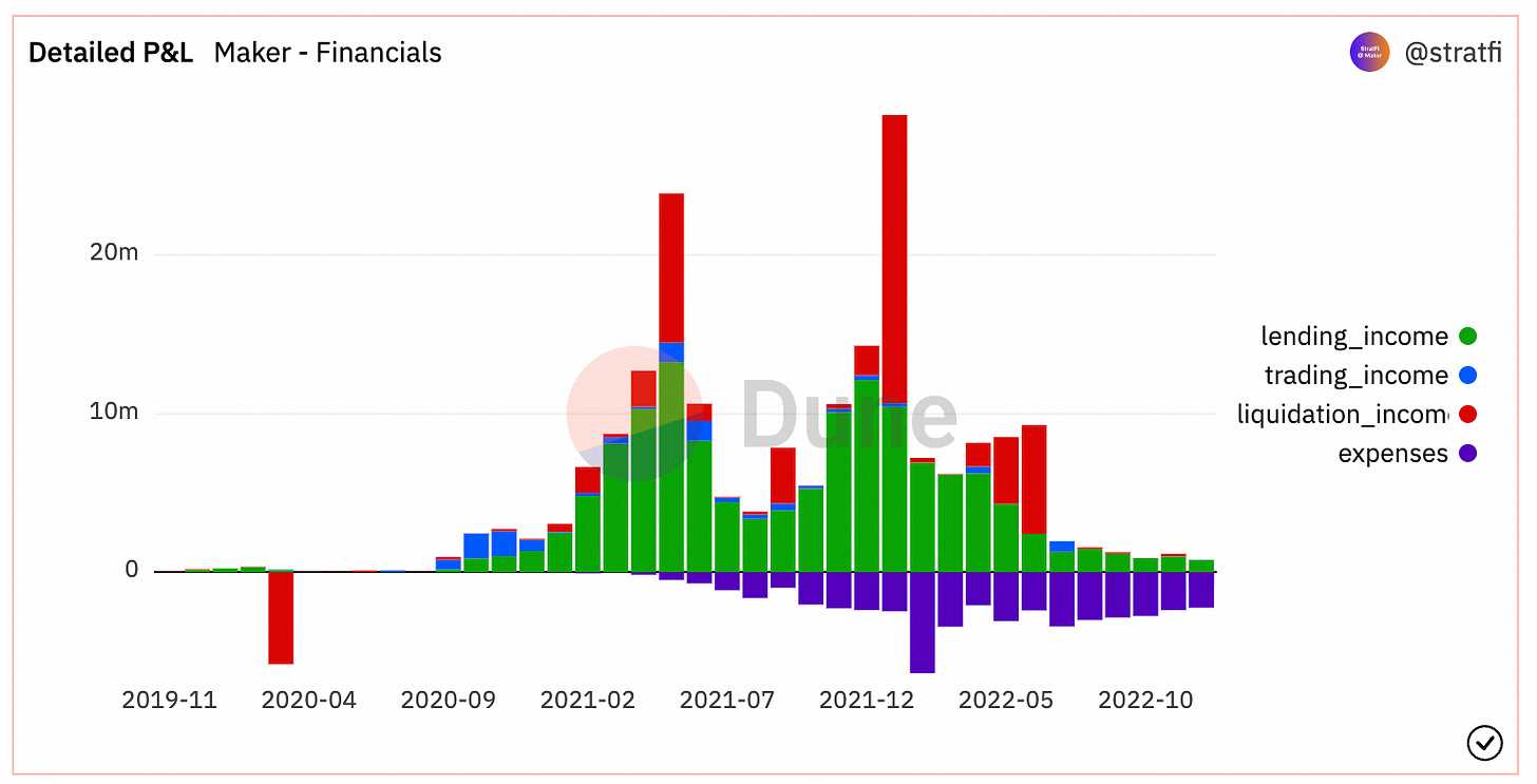 MakerDAO: 超额抵押稳定币。收入来源于 DAI 的借款利率总和清算处罚,在迅速股市熊市期内反倒借助清算牟取了大批盈利,自然 MakerDAO 一年数千万美元的经营支出一样让人乍舌。 在其中贷款利息收入进到财政,而清算收入则进到超量保障基金最终注入回购市场支撑点 Maker的价格。PSM 体制在为 DAI 产生去中心化难题的同时还给产生了很多的 USDC,现阶段 MakerDAO 已经科学研究使用这个 USDC 来购买债券等实际资金(RWA),开朗来说数十亿美元的美元预估能够带来数亿美元利息收入。总体来说 MakerDAO 拥有明显的先发优势和十分完善的体制,但是目前跟进度比较慢,遭遇后来居上的考验。