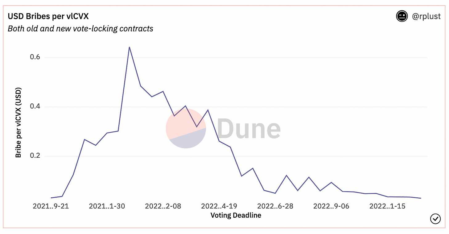Convex: 盈利聚合器。LP 的 Curve 的流动性挖矿鼓励提成 17% 为协议收入,5% 给 vlCVX 持有人。CVX 的收入一样不可以体现它在行贿层面所带来的巨大盈利,饶是如此其全年度收入仍然长期领先,现阶段仍然位居头顶部,伴随着 CRV 公开增发的逐渐下降的,将会对 CVX 产生更多的考验,Convex 也寻找拓展至别的协议去发展。