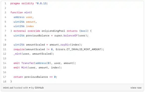我们可以看到与用户存入的市场相对应的 aToken 将被称为「铸造」函数。