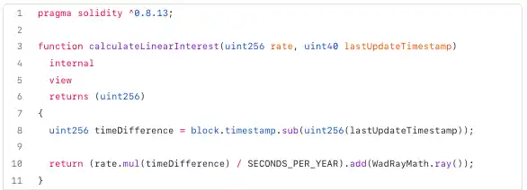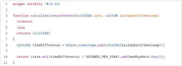 在下面的示例中,liquidityIndex 可以定义为一定时间内储备积累的利息: