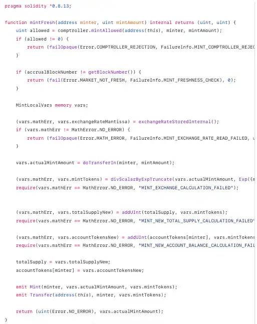 与我们在 AAVE V2 中讨论的类似,Compound 的「份额Token」被铸造并用于赎回基础资产。