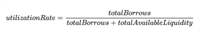 在定义利用率时,我们更容易考虑储备中流动性(当前借出的流动性)与市场中总流动性之间的比率,这可以简化为: