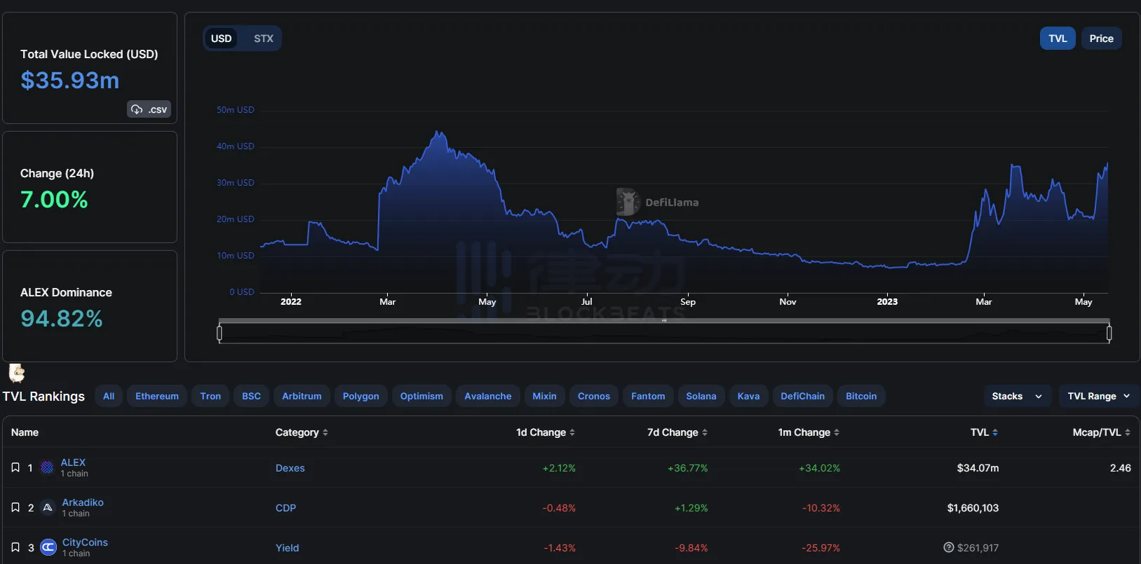 现阶段 Stacks TVL 大约为 3600 万美金,在其中去中心化买卖平台 ALEX(TVL 大约为 3400 万美金)为基本 TVL 奉献方。Stacks 容许运用比特币作为支撑清算层来建立去中心化及抗审核的手机软件。最终目标是建立一个金融体系和去中心化软件项目的网络,这类产品都采用比特币作为他们的贷币。现阶段生态系统的最高级优先是把 Stacks 与比特币更密切集成化,便于快速地与 Stacks dapps 一起使用。