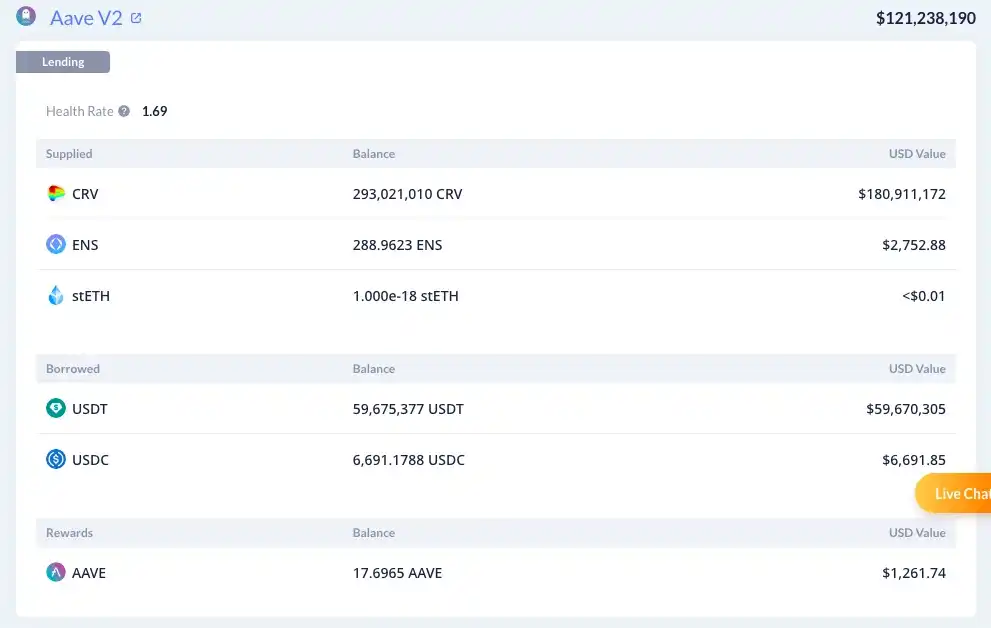 最先可以肯定的是,包含 Aave 等在内的很多借贷合同基础上的 CRV 质押债仓将会遭遇结算风险性。