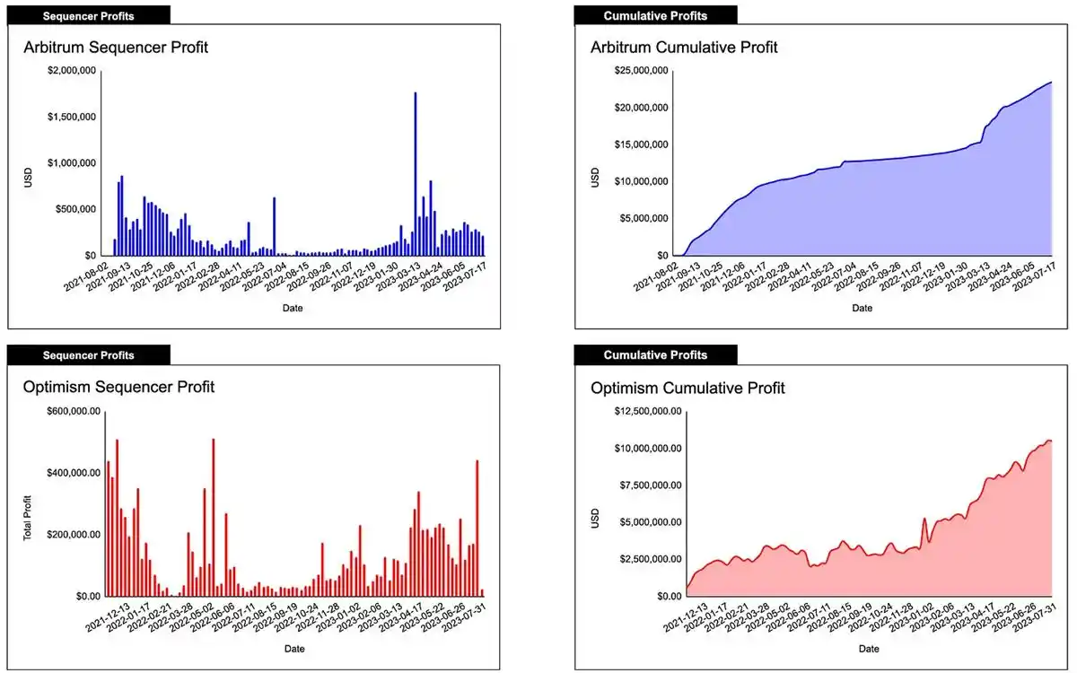 在目前的形式下,Optimistic Rollup(ORU)通过单个中心化排序器的运作来产生收入。未来,预计 ORU 最终会实现去中心化,这将为通过 MEV(最大化以太坊价值)或要求排序器运营商质押原生代币/分享收入的其他收入流打开大门。