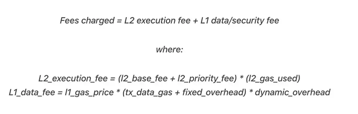 Fees = L1_gas_price_estimate * (L1_calldata_size + L1_buffer) + L2_gas_price * L2_gas_used