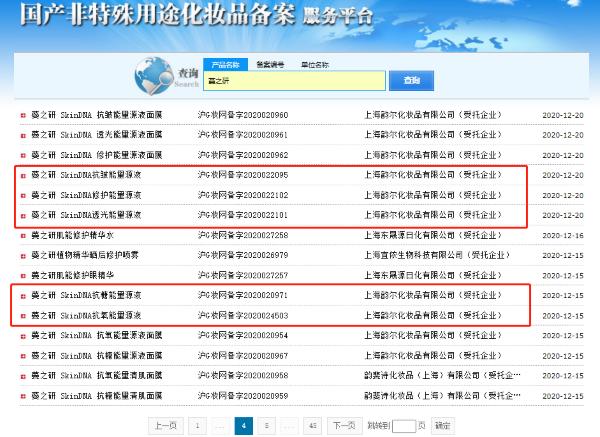 旗下Skin DNA能量源液系列产品为上海韵尔化妆品公司代工生产