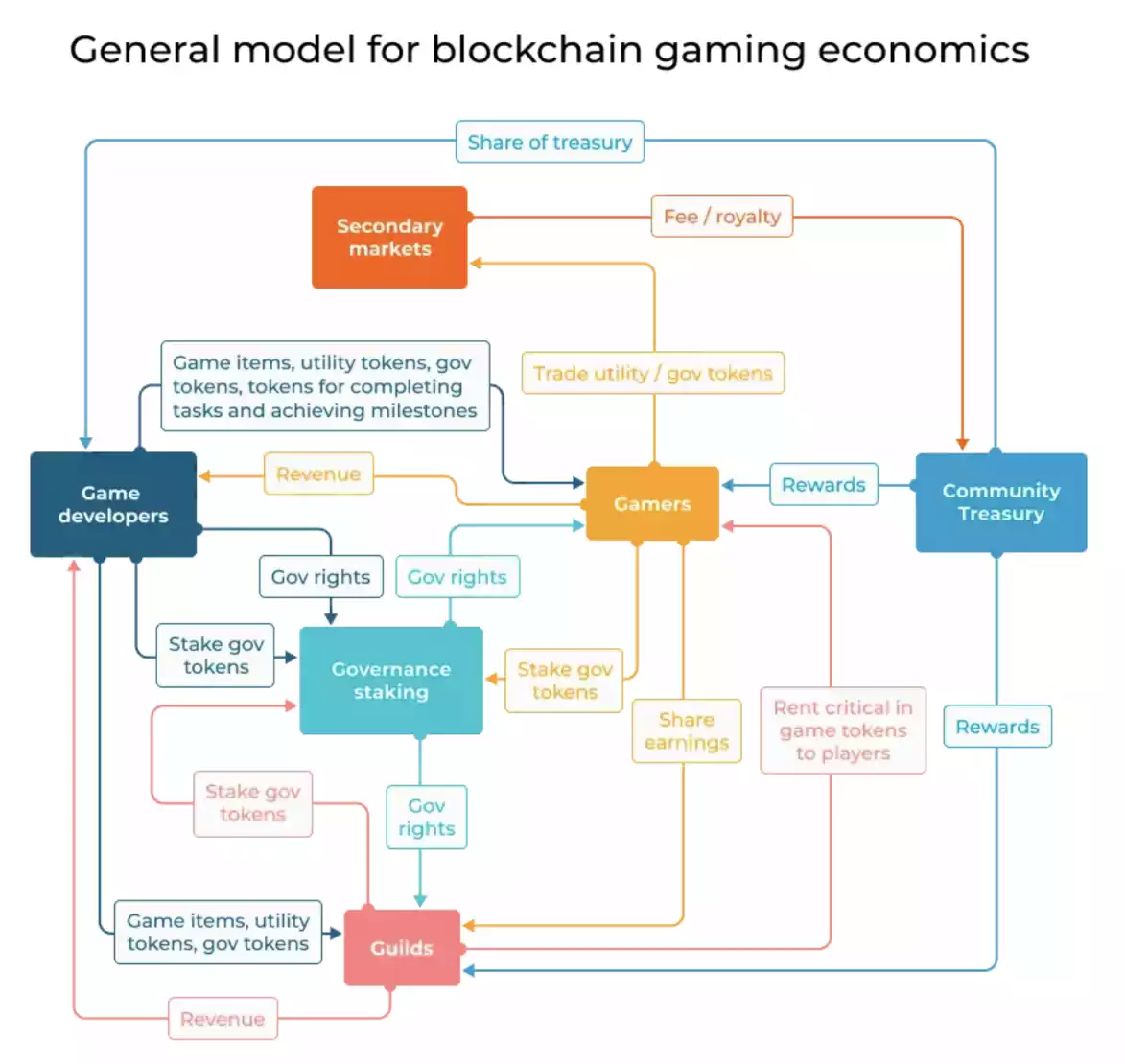 Token 投资模型是 Web3 游戏的重要环节,设计方案复杂性也十分之深。针对 Web2.5 游戏,首先要关注的是游戏观众的丰富性及多来源于圈外人 Web 2. 游戏玩家。她们更为追求完美游戏内涵和作用。钱财只应作为一个激励方式,而非核心动因,因而在规划 Token 经济发展时,我们应该搞清楚优先次序,要把销售市场游戏与关键游戏循环系统自身分离,将整个经济体系的可持续与健康发展需求放在第一位。一方面,不用设计方案极其通货紧缩的 Token 实体模型,使价格暴涨而短期内强悍出圈。另一方面,play-to-earn 机制的应该根据销售市场及游戏局势持续调整,以保障游戏里外经济体系的可持续发展观。
