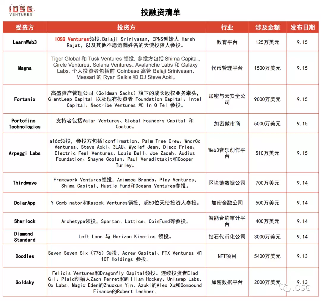 教育平台 LearnWeb3 完成 125 万美元种子轮融资,IOSG Ventures 领投,其他参与方包括 Balaji Srinivasan,EPNS 创始人 Harsh Rajat,以及其他不愿透漏姓名的天使投资人均参与了本轮融资。LearnWeb3 是一个高质量的、覆盖面广的、完全免费的教育平台,旨在创造学习机会,让更多普通人进入 Web3,并成为 Web3 优秀的开发者,包括但不限于女性、有色人种和其他在科技领域代表性不足的 Web3 开发者群体。