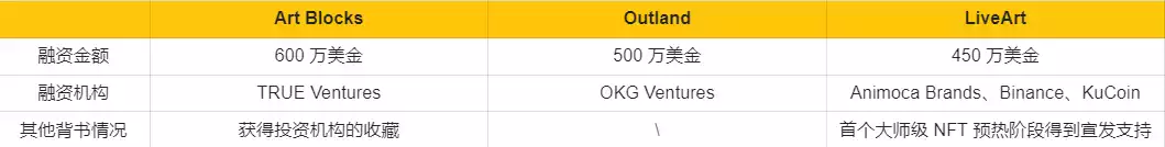 小结: 这三个顶级 Web3 艺术策展孵化平台均获得了融资,而 LiveArt 的融资金额虽然相对较少,但是却得到了顶级 Web3 投资机构和顶级交易平台的投资,而且在第一个大师级 NFT 发售前的预热阶段,得到了各大顶流机构的宣发支持。再结合该项目的发币预期,可以感受到它与其他项目有很大的不同。