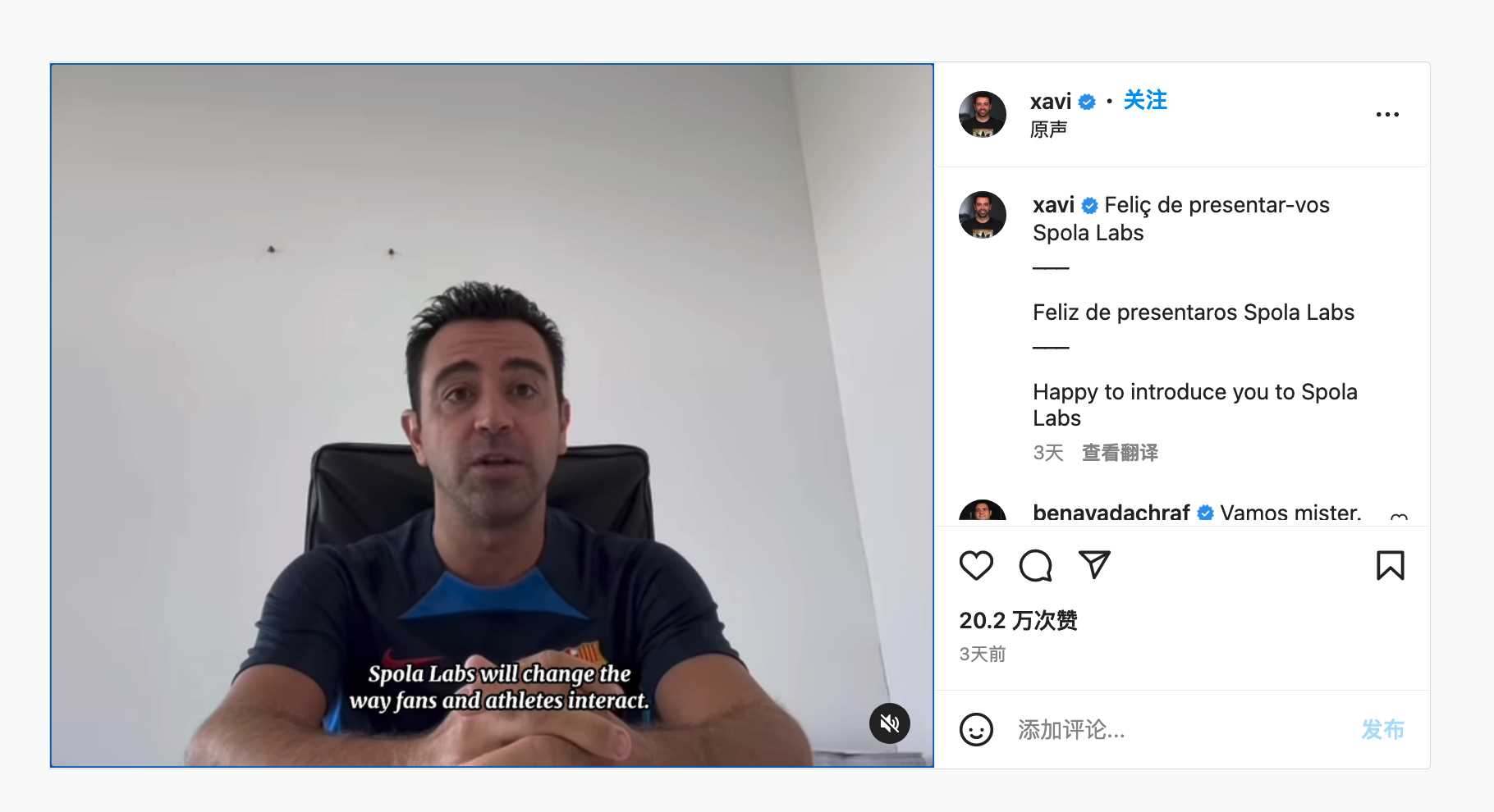 如今,哈维选取与 Spola Labs 协作,专注于 Web3 体育产业。实际上,在宣布退役后,哈维在商业推广行业一直谦虚谨慎。而选择了与 Spola Labs 协作的原因之一取决于,哈维坚信,Spola Labs 能改变粉丝们与玩家互动形式。