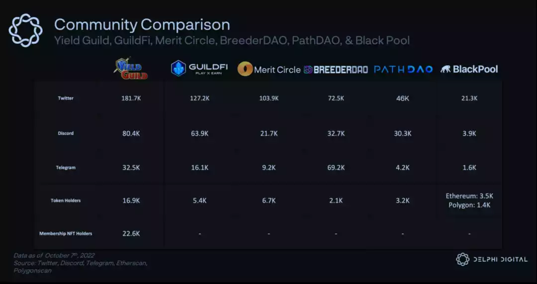 值得注意的是,尽管 Yield Guild 筹集的资金相对较少,但其在社区规模方面拥有令人印象深刻的数据指标(如下所示)。拥有先发优势无疑有助于实现这一点。