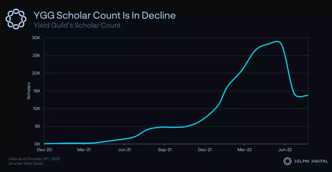 上图显示了,随着时间的推移 Yield Guild 的学者人数。如你所见,学者人数在 5 月至 7 月之间出现了大幅下降,这支持了我们上面概述的理论。