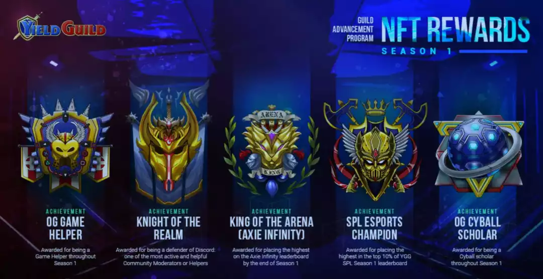 GAP 的第一个赛季由 45 项成就组成,这些旨在激励某些行为以帮助发展公会。此外,它允许成员建立他们的元宇宙简历。它通过奖励参与者特定任务的 NFT 和 YGG Token 来实现这一点,这些 Token 既奖励参与者的努力,又区分公会内的杰出参与者,为他们在未来开辟更多机会。
