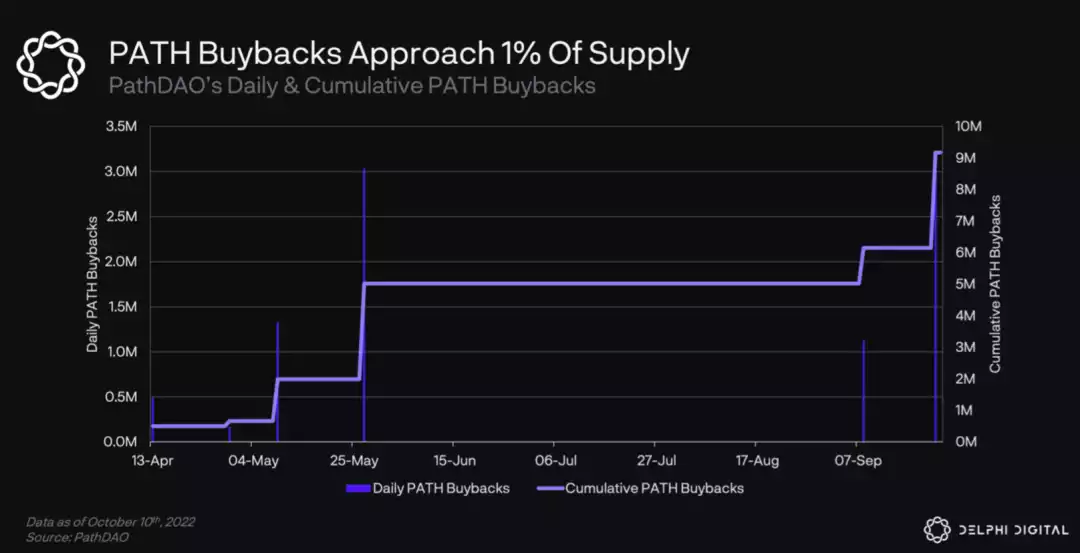 截至目前,尽管 PathDAO 不如 Merit Circle 的 MC 回购和销毁数据那么令人印象深刻,但其已成功回购了 PATH 总供应量近 1%。