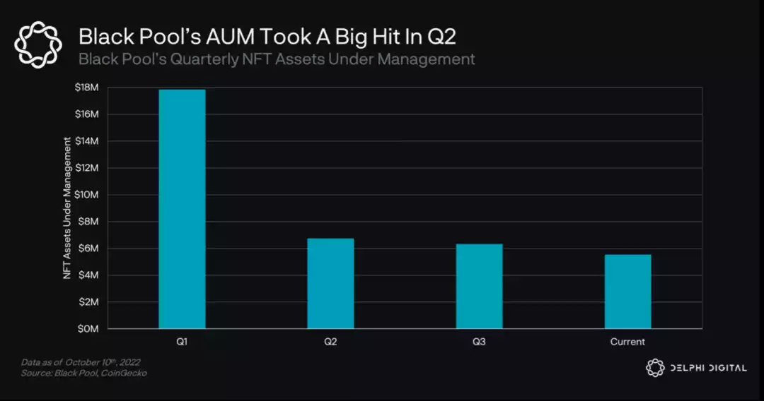 根据数据,BlackPool 在过去几年似乎在多个方面表现不佳。正如我们之前在社区比较表中介绍的那样,尽管 BlackPool 是最古老的 crypto 游戏公会之一,但在大多数情况下它都排在最后。正如我们在上一张图表中看到的,自 21 年 9 月以来,BlackPool 的收益一直朝着错误的方向发展。现在看上面的图表,很明显 BlackPool 的 NFT 投资组合在今年全年的表现也很差。