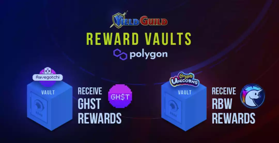 拥有 YGG 公会徽章的 YGG 持有者可以在 Polygon 上的两个 YGG 奖励金库中的任何一个中,质押他们的 token(最多 90 天),以通过 P2E token 的形式获得相应的奖励。Yield Guild 选择在 Polygon 上推出奖励金库,目的是降低参与的门槛,并使参与者能够保留更多的奖励而不是支付 gas 费用。