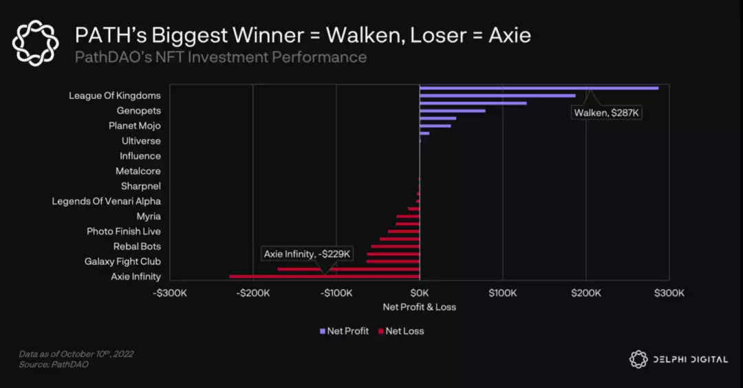 PathDAO 表现最好的 NFT 投资是《League Of Kingdoms》。和 Merit Circle 一样,他们表现最差的 NFT 投资是 Axie Infinity。