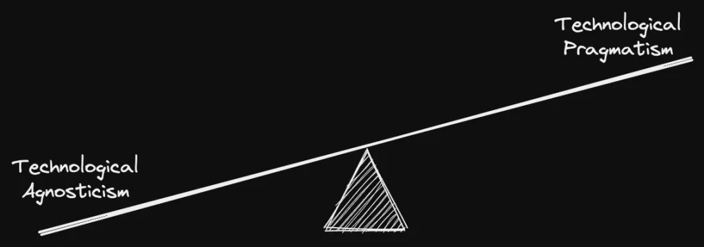 关于如何 ( 以及在多大程度上 ) 规范技术与人类之间的互动的决定,归根结底是社会设计的决定。为了我自己的应用研究目的,我总结了两个主要的思想流派:技术不可知论 --TA & 技术实用主义 --TP。