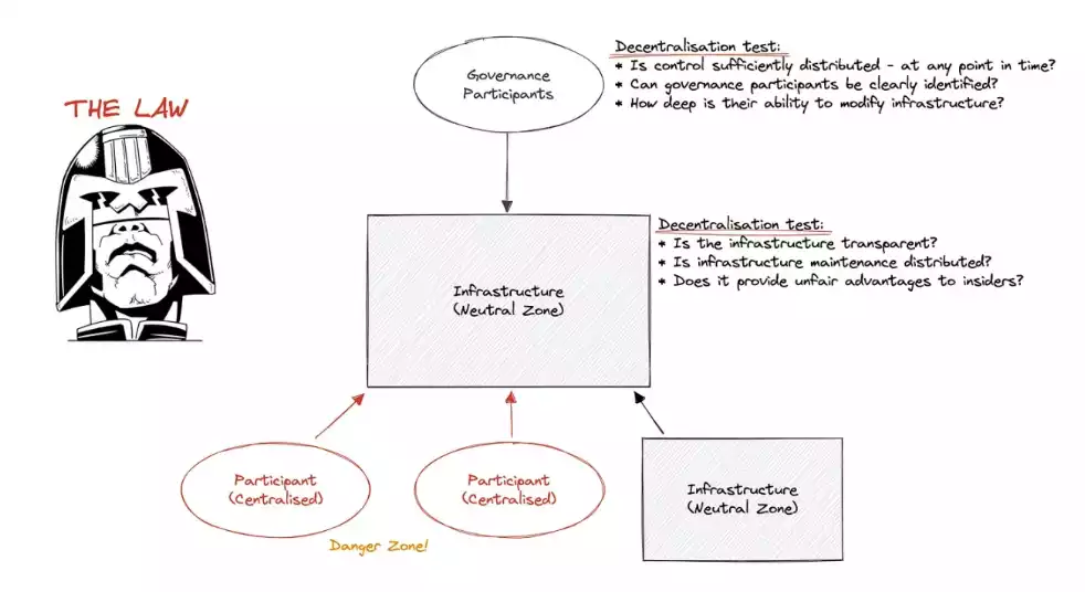 分析师很可能会意识到,假设 A 和 B,DeFi 中活跃的大多数协议都没有通过 C。在任何形式良好的定义下,很少有协议是去中心化的。对于大多数加密项目来说,权力下放是一种错觉或掩饰。但让我们假设 C 是满足的,然后继续。