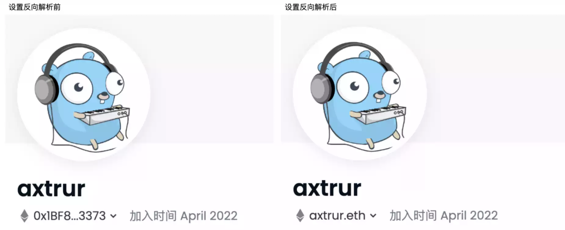 设置反向解析之后,opensea 用户界面会将用户钱包地址展示为可读的 ENS 域名,则是反向解析的过程解析器结构以及 node 对应的注册表信息。