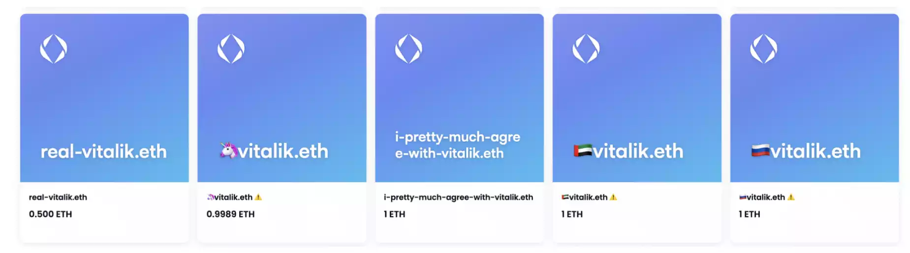 2、特殊字符:ENS 合约并没有限制.,emoji 表情等特殊字符过滤,以致于目前交易市场存在太多冗杂非规范的域名。