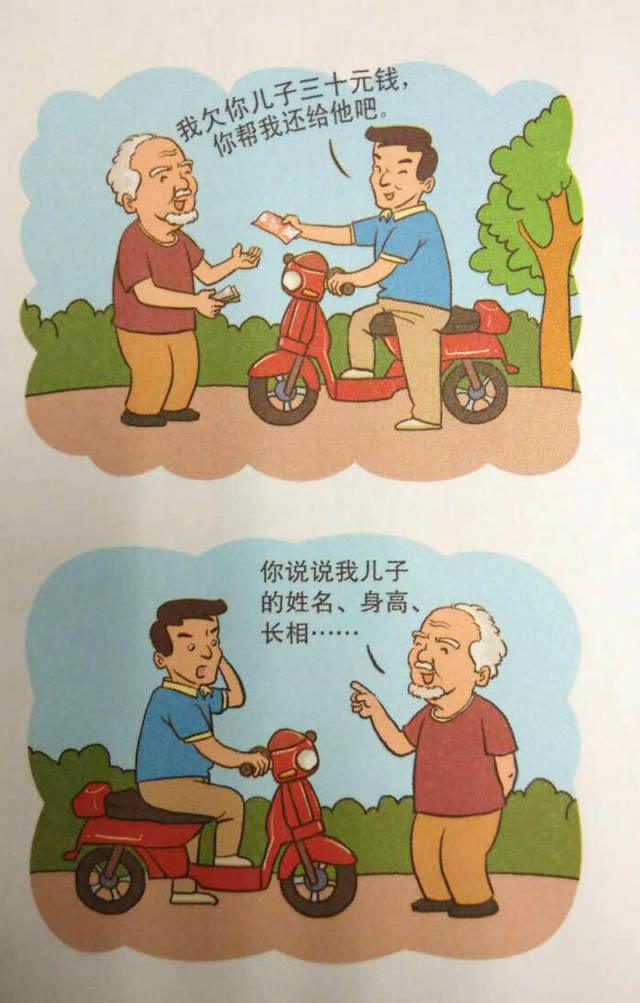 该男子对蔡大爷说:“我欠你儿子30元钱,你帮我还给他吧。”“你是不是我儿子高中同学啊?”蔡大爷问。该男子立即作答:“是是是……”结果该男子给蔡大爷的是百元假币,骗走70元真币。