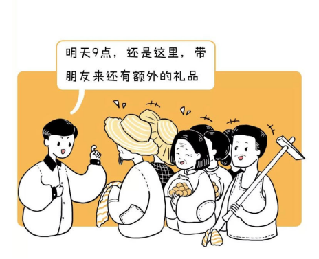 很多人已经对这帮人产生了信任,第三天便会拉上更多人早早地过来领奖品,有些甚至是一家老小都来了。