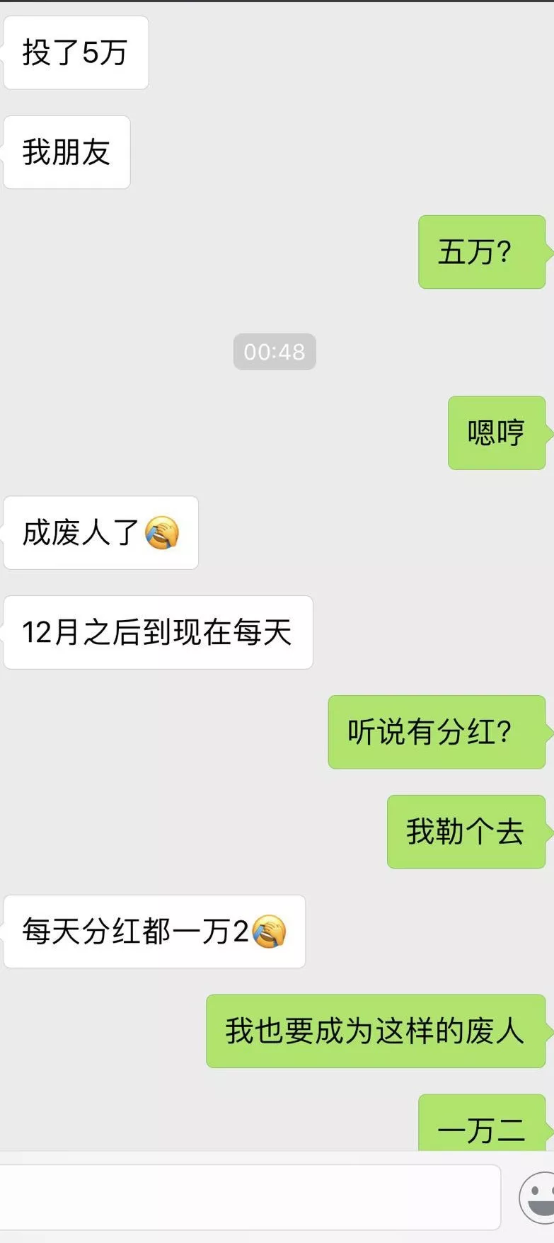 深姐获得的可靠的消息,如图,有人在2017年9月4日之后,私募的时候投入5万元,在十二月份以后,每天分红约1万多,5天回本。