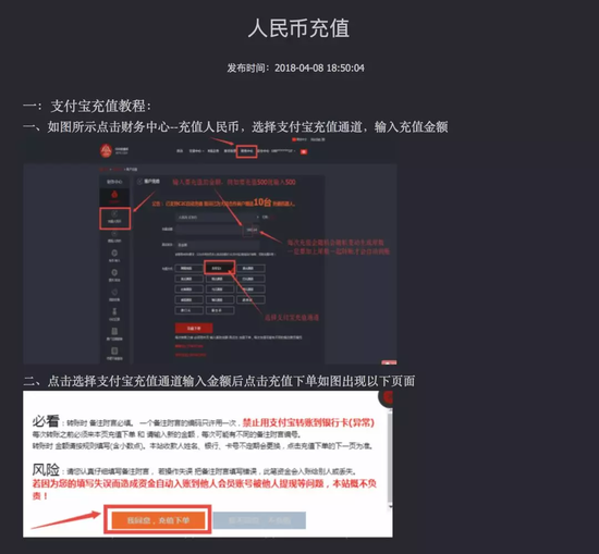 直接充值人民币,注意不是通过场外的方式。这可是国内去年9月4日ICO禁令后严格禁止。