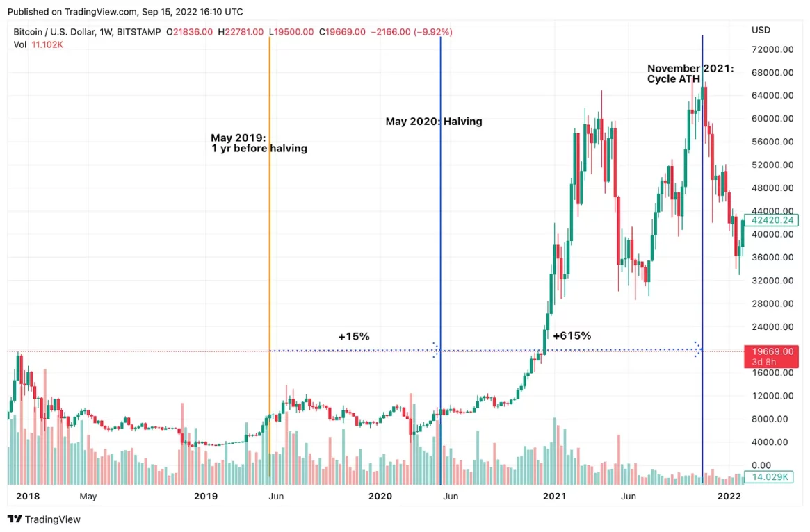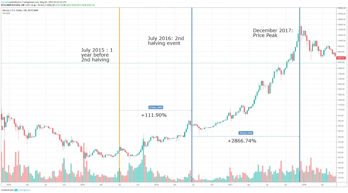 BTC在减少后 12 至 18 个月发生历史时间最高处